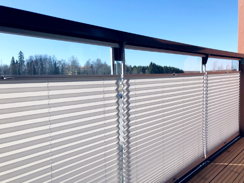 Kaikki mallit sopivat parvekkeisiin, joissa alaosan kaideosa on lasitettu, ja antavat tehokasta näkösuojaa sekä suojaa auringon paahteelta – ilman poraamista.