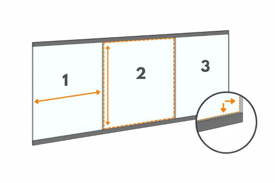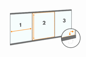 Älä ota mittaan mukaan ylä- ja alareunan alumiiniprofiilia, vaan mittaa pelkästään näkyvän lasipinnan koko.