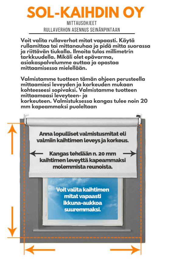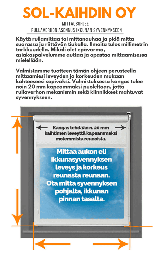 Ohjeet rullaverhon mittaamiseen