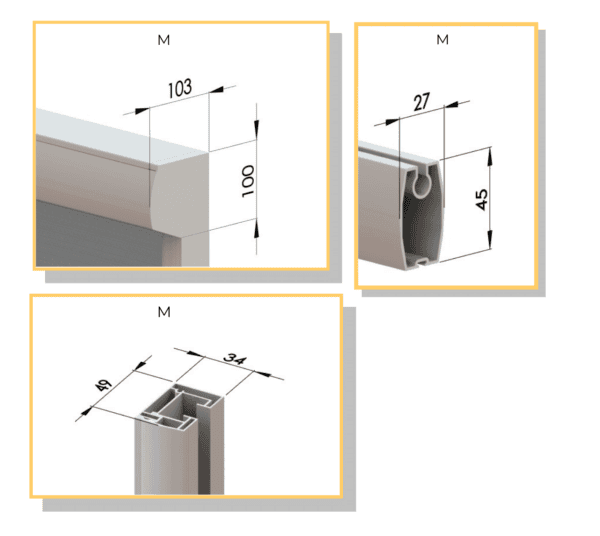 Kaihtimen sivuilla olevat sivukiskot, joissa on urat kankaan vetoketjuille, pitävät kankaan suorana ja täysin peittävänä. Näin kangas ja mekanismi luovat yhden vahvan yksikön, sivuille ei jää häiritsevää rakoa ja kaihtimen/kankaan saa asennettua tiiviisti kiinni useaan eri käyttökohteeseen.